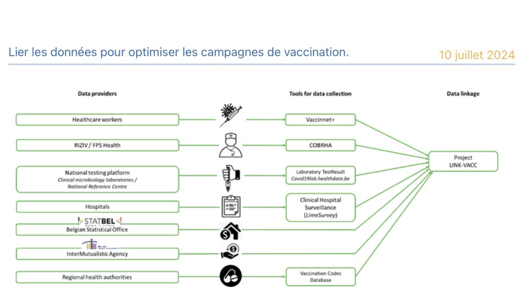 Un autre grand projet d’EUVABECO est de croiser les données de santé pour déterminer des groupes cibles. Ici, c’est la Belgique qui a fait figure de précurseur. Pendant la pandémie de Covid-19, différentes bases de données ont été liées au niveau individuel pour identifier avec précision des groupes prioritaires à la vaccination.