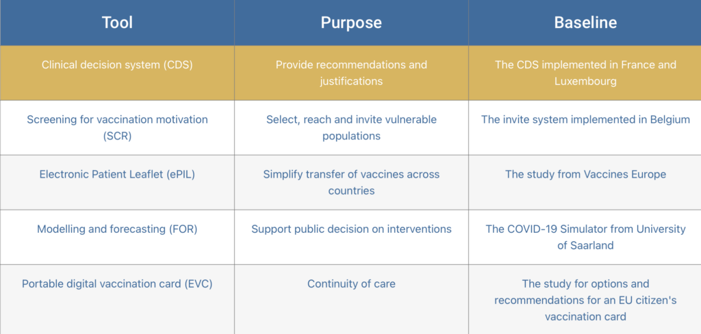 Un autre outil développé par EUVABECO génèrera des conseils à la décision clinique de vaccination, à partir de la CVE, des dossiers médicaux et électroniques, des recommandations locales et des réactions du patient à différents questionnaires.
