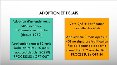 Selon l’article 55 du Règlement sanitaire international les amendements au RSI doivent être déposés au plus tard 4 mois avant le vote, de manière à ce que les états membres puissent en prendre connaissance et en débattre dans leurs parlements respectifs.